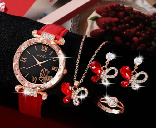 Úchvatný dámsky set s motýlim dizajnom, ktorý spája eleganciu a hravosť v jednom. Tento set v krásnej červenej farbe je dokonalým doplnkom pre každú ženu, ktorá chce zvýrazniť svoju osobitosť.