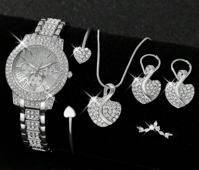 - Dámsky 6-dielny srdiečkový set, strieborný